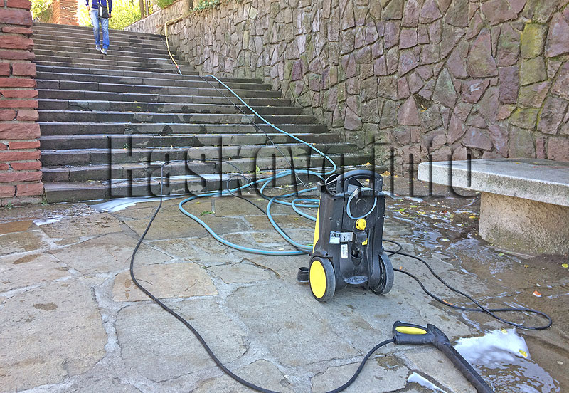 От общината изпратиха работници, които да чистят графитите по стълбището към монумента на Света Богородица в Хасково.