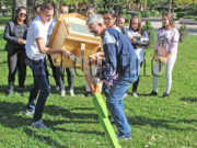 Дузина младежи вдигнаха къщичка за книги и в Градската градина
