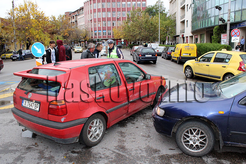 Нисан и Фолксваген катастрофираха малко преди 15 часа на кръстовището до комплекс „21 век“ в Хасково.