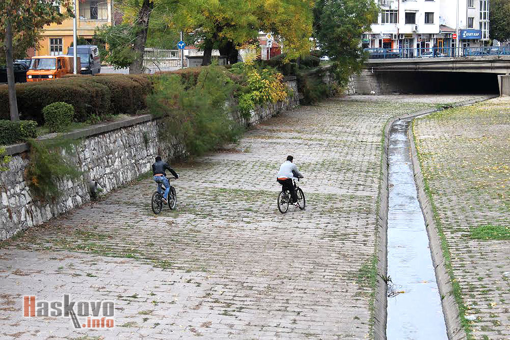 Младежи си направиха разходка с велосипеди по коритото на хасковската река, заснети от читател на Haskovo.info.