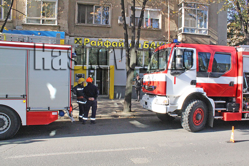 Сигнал за пожар в банка вдигна на крак пожарната и полицията в Хасково
