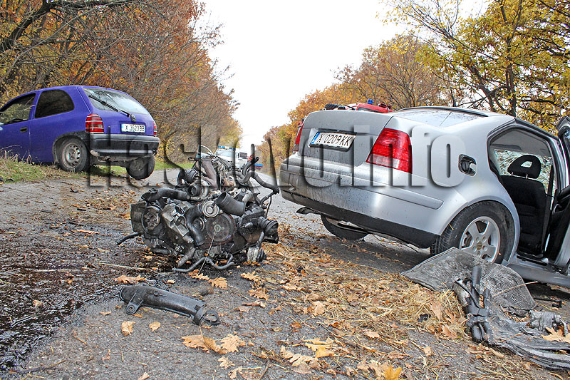 В инцидента участваха Фолксваген и Опел, като и в двете коли бяха симеоновградчани. Двата автомобила са се движили към Хасково, като Фолксвагенът изхвърча в канавката и при сблъсъка с дървета и храсти му изхвърча двигателя, който пък ударя Опела.