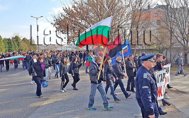 Протестиращите се събраха в центъра на Харманли и в шествие стигнаха пред бежанския център. Много от тях носеха маски на лицата си за да покажат, че има опасност от зарази в града.