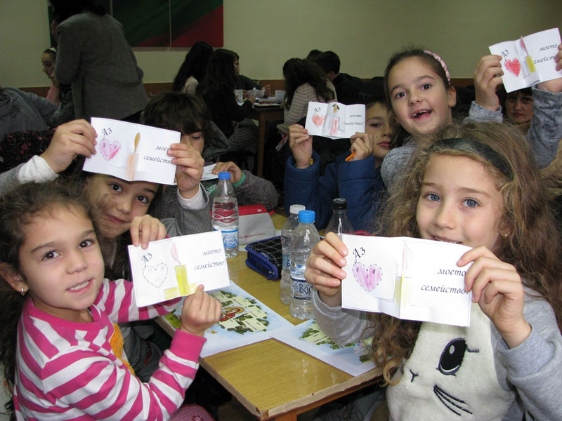 А децата с вълнение изработиха поздравителни картички за семействата си и попълниха семейно родословно дърво, подготвени от библиотекарите.