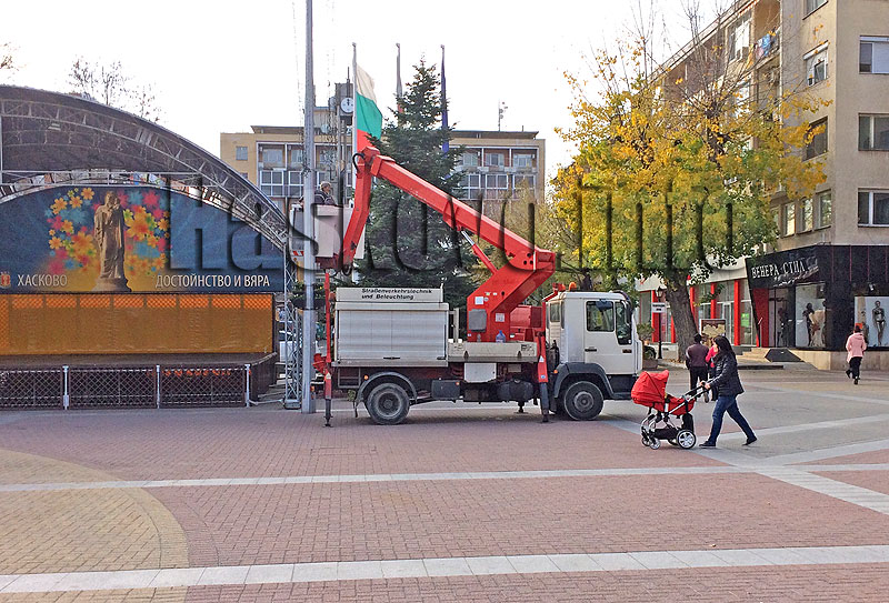 В същото време се поставя коледната украса в областния град, като от няколко дни вишки закачат лампички по централните алеи и разпъват синьото звездно небе от театъра към книжния базар.