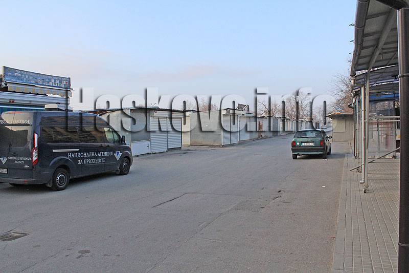Вечерта на входа на пазара вече имаше втори бус на НАП и една патрулка.
