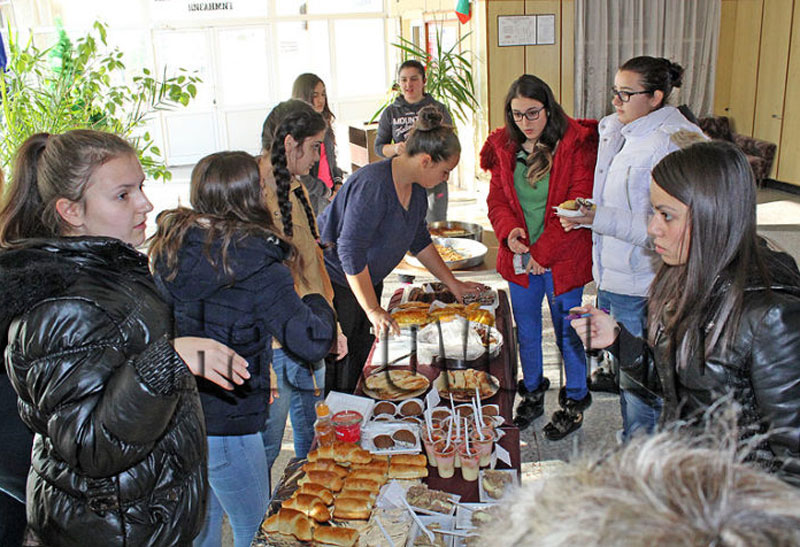 Базарът с вкусотии, приготвени от ученички в 9, 10 и 11 клас, бе подреден във фоайето на първия етаж и в него се включиха много техни съученици, които си купиха от лакомствата.