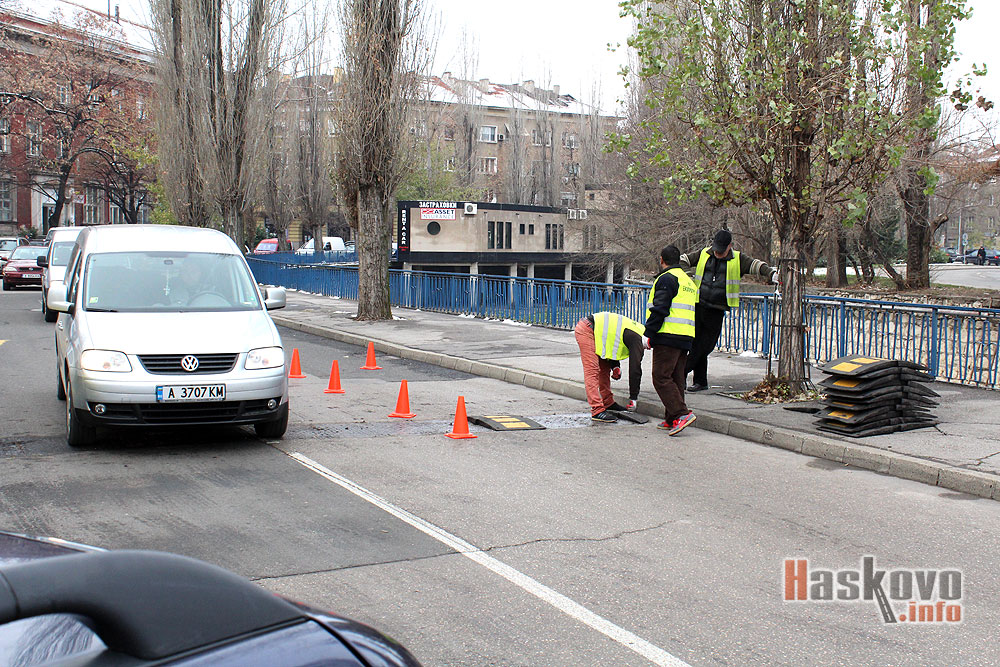 Повечето от гумените легнали полицаи в Хасково бяха демонтирани от „Екопрогрес“ за да не бъдат повредени от греблата на снегорините през зимата.