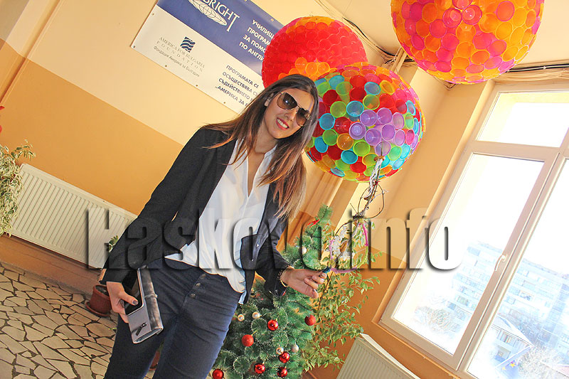 Украсата включва огромни цветни топки и красив снежен човек, поставен до украсена елха във фоайето на Езиковата на втория етаж.