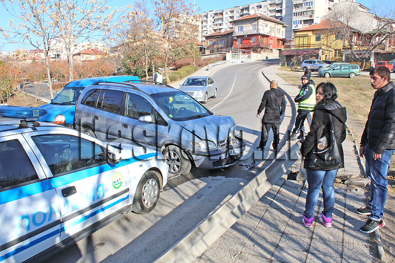 Опел се разби в мантинела, шофьорът ругае заради заледената улица „Дунав“