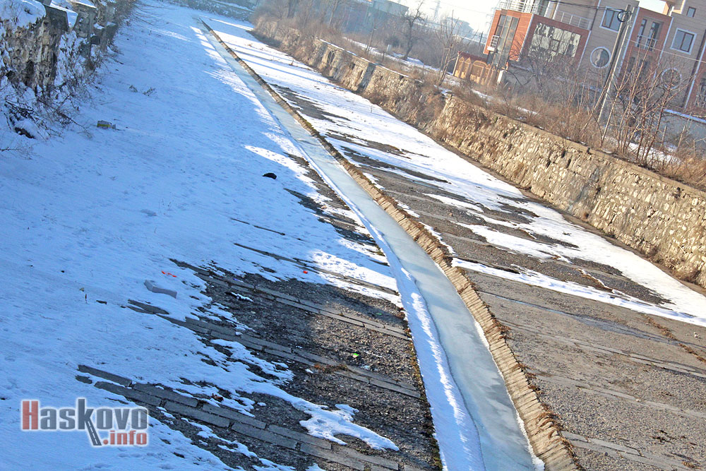 Заради минусовите температури Хасковската река замръзна в западните части на областния град.