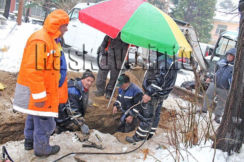 Подменени са около 12 метра изгорял подземен кабел от трафопоста зад старата морга. Работници от частна фирма подменяха цял ден кабела под голям чадър. Преди това от EVN със специален уред са локализирали аварията.