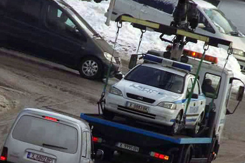 Полицейски автомобил, вдигнат от паяк в Хасково, стана хит в социалните мрежи.