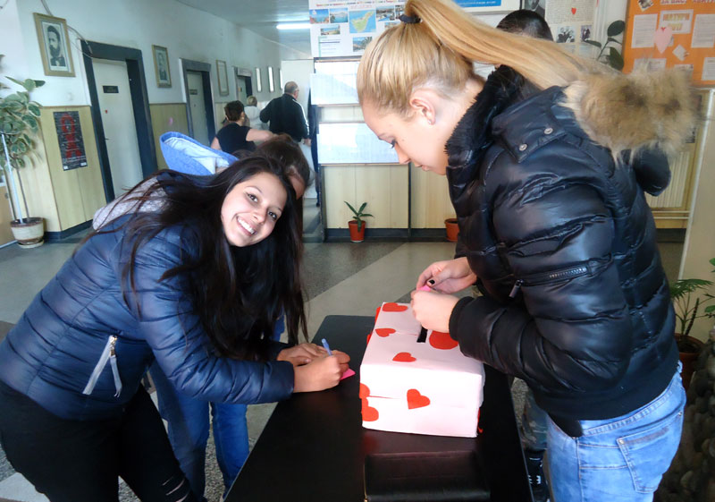 Много от гимназистите се престрашиха и пуснаха своите обяснения в любов и пожелания в специална кутия. Съдържанието й ще пристигне малко по-късно при своите получатели.