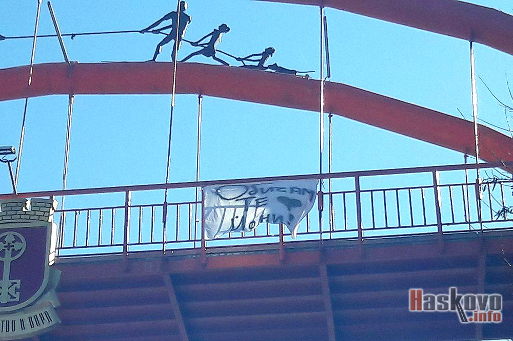 Поредното любовно послание бе разпънато на оранжевия мост над булевард „Освобождение“ в Хасково. Мястото вече се превърна в емблематично за засвидетелстване на чувствата.