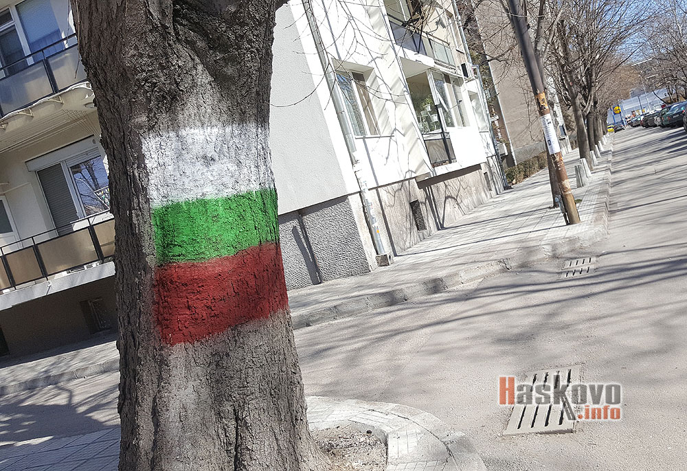В навечерието на националния празник Трети март българското знаме е изрисувано и на дърво в центъра на Хасково.