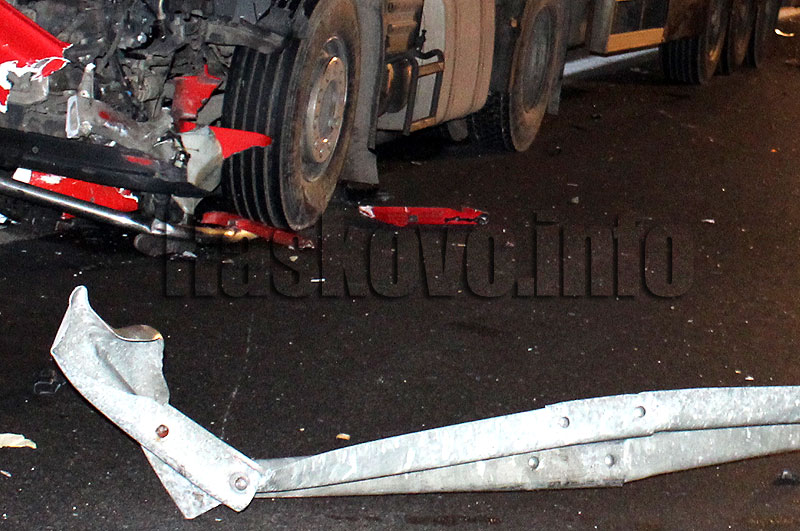 Магистралата не е затворена за движение, има изкривена мантинела и изкъртена шахта.
