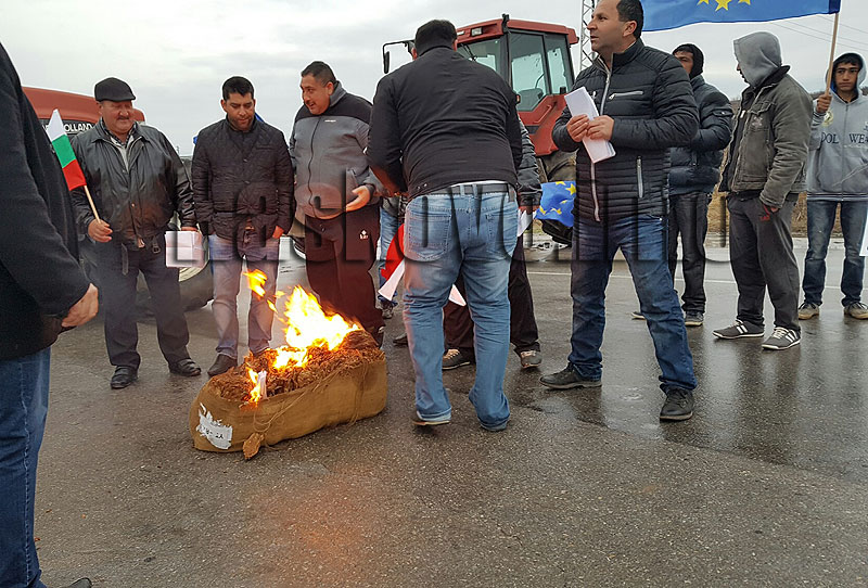 Производителите запалиха тютюн в знак на протест. По-късно движението бе възстановено, но в 10.30 ч. започва официалната блокада.