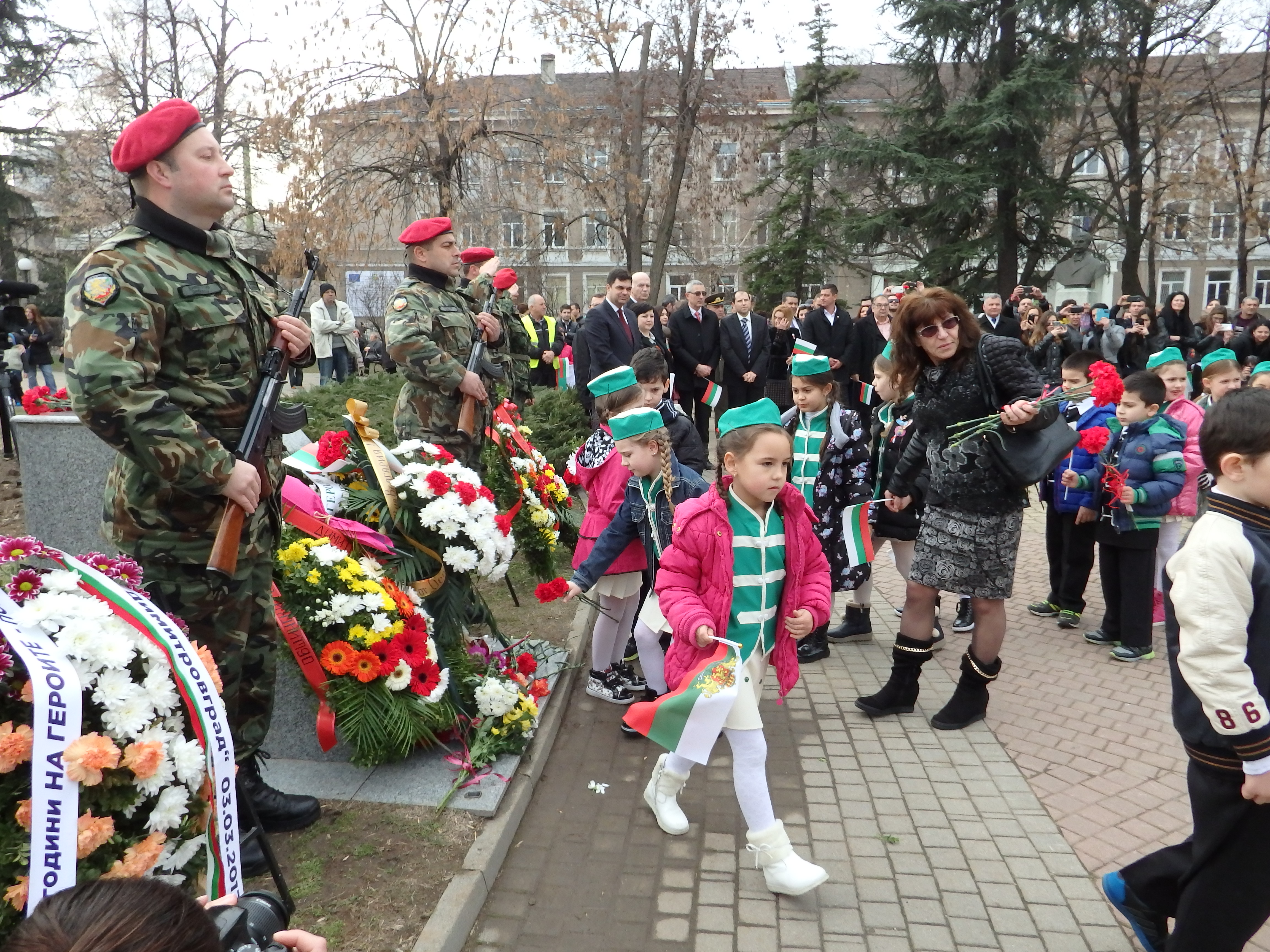 Честването започна на площад „България” с церемония по издигане на българското знаме с участието на военнослужещи и под звуците на Забавно-духовия оркестър и ученичката Кристин Стефанова.