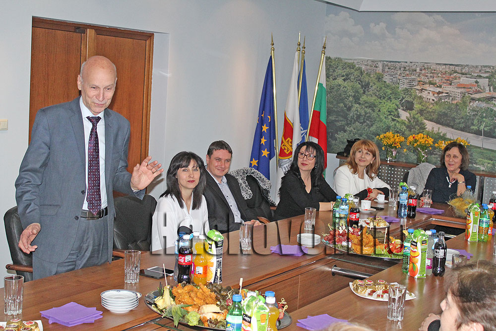 Беливанов зарадва дамите с китка пролетни цветя. Всички бяха поздравени и от заместник-кмета Милена Трендафилова. В срещата участваха и зам.-кметовете Евгени Консулов и Велин Балкански.