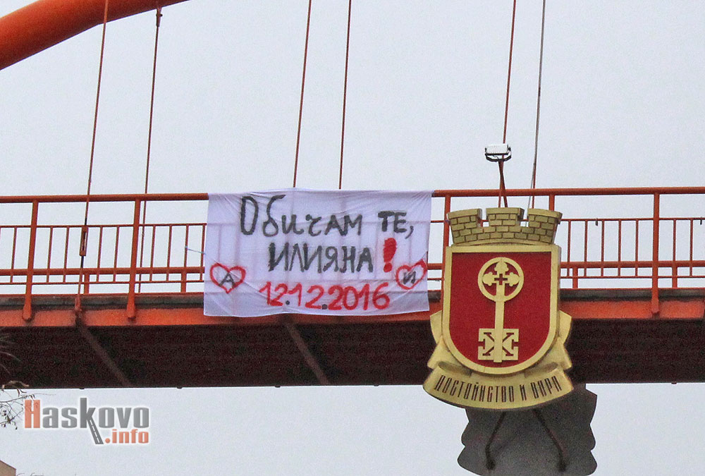 Поредното любовно послание, този път с текст „Обичам те, Илияна!“ е опънато на оранжевия мост над хасковския булевард „Освобождение“.