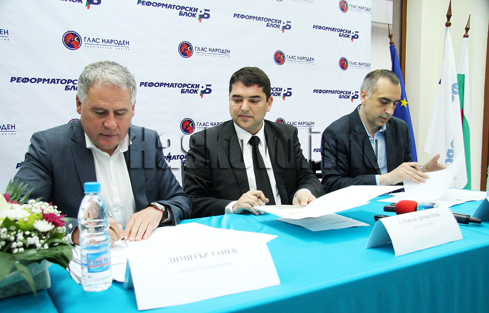 Водачите на листите на Реформаторски блок – Глас народен за Хасково – Стефан Димитров, Стара Загора – Димитър Танев и Кърджали – Денислав Генчев подписаха меморандум, с който поемат политически ангажимент да работят за осъществяване на проект за изграждане на скоростен път между трите области, който води до граничния пункт „Маказа“.