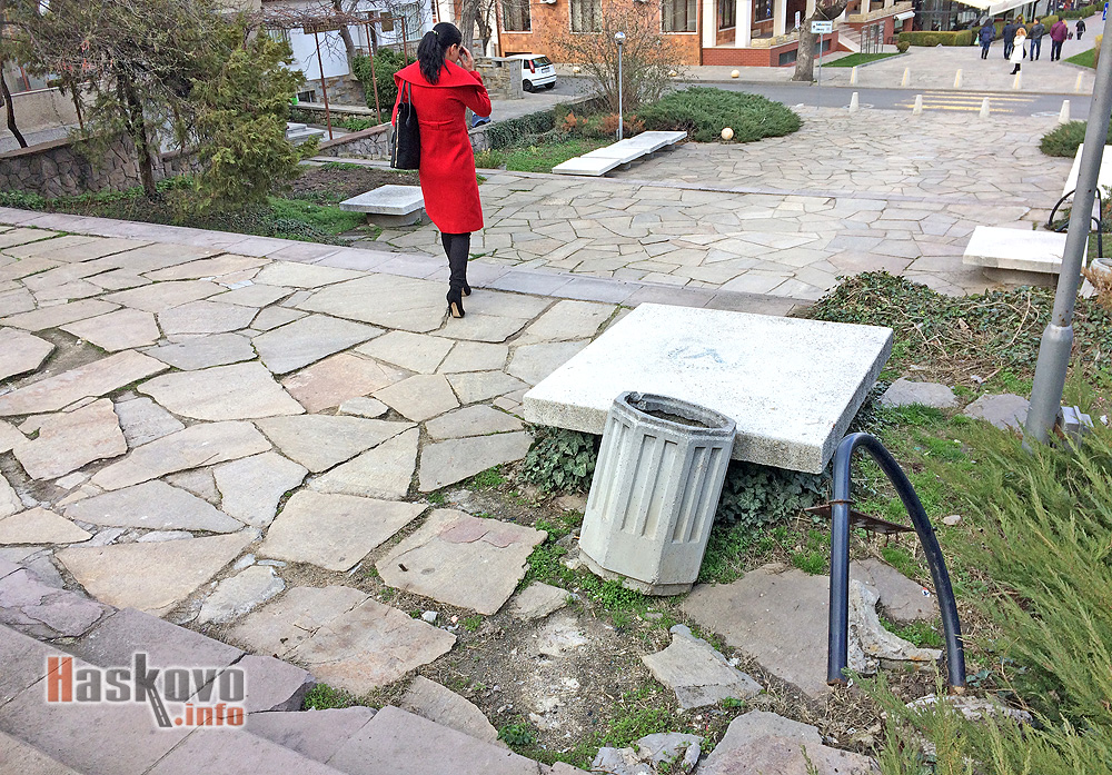 Вандали са изкъртили пейка до стълбите, водещи към монумента на Света Богородица в Хасково, сигнализираха читатели на Haskovo.info, които изпратиха снимка.