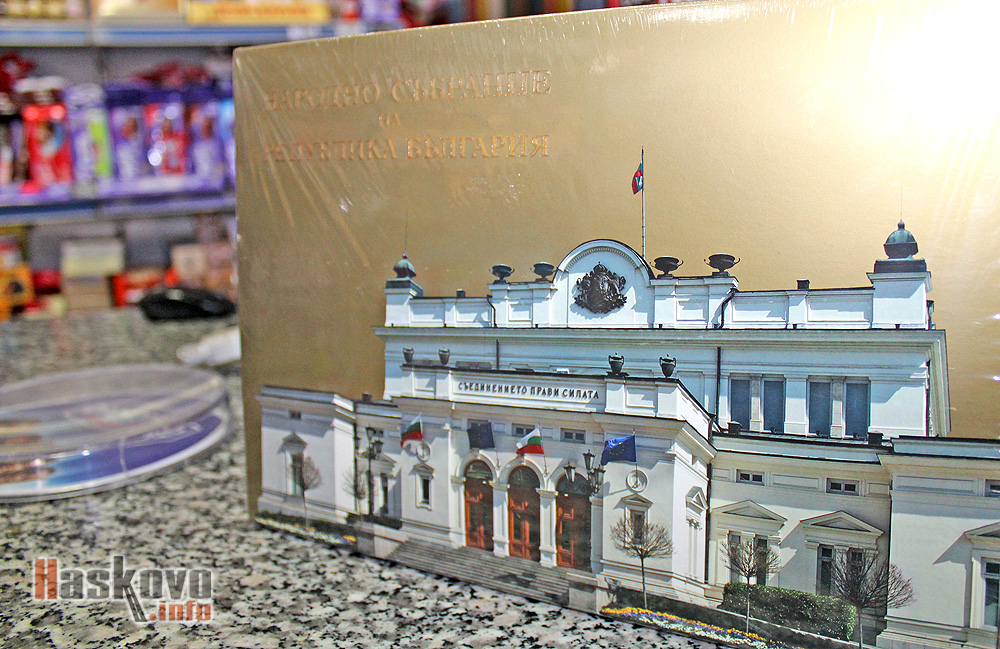 Дни преди парламентарните избори на 26 март в Хасково вече се продават и шоколадови бонбони „Народно събрание на Република България“. Цената на кутията е 9.50 лв., а бонбоните са 21.