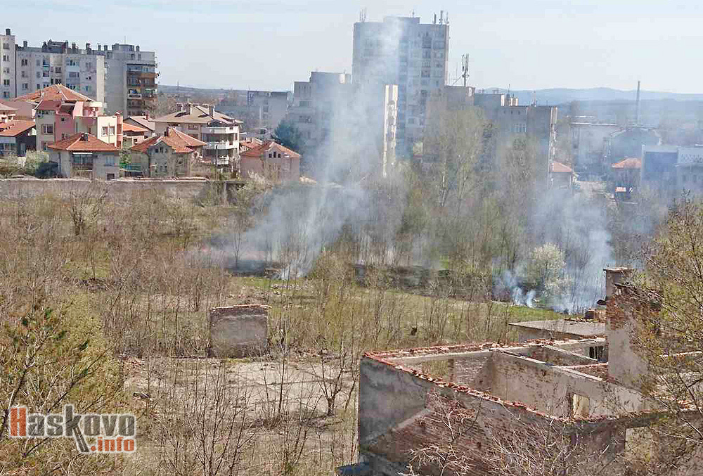 Читатели на Haskovo.info изпратиха снимка на горящи треви в рушащите се бивши казарми на хасковската улица „Булаир“.