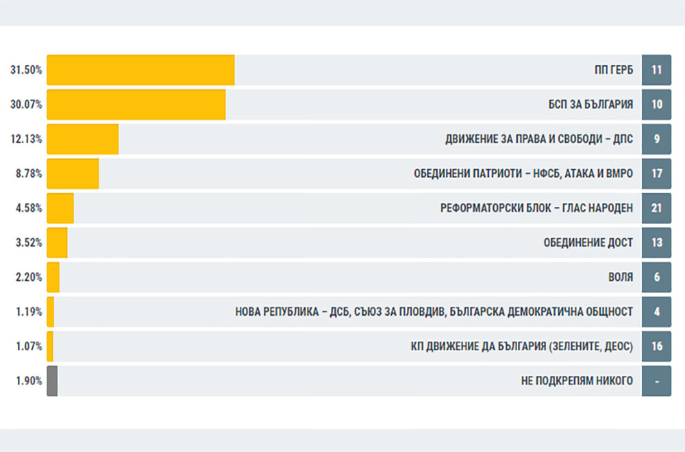 За ГЕРБ са гласували 37 830 избиратели или 31.50%. „БСП за България“ са подкрепили 36 110 (30.07%).