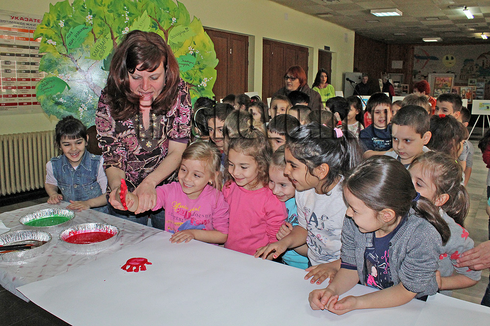 След това децата се включиха в забавната игра „Ръчички на Доброто“, в която украсиха две платна в Младежкия.