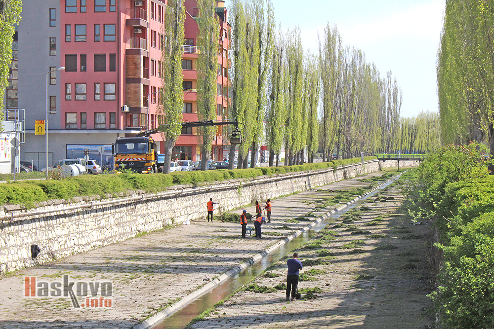 Акцията по почистването на хасковската река вече стигна района до УНСС, откъдето се изнасят големи количества отпадъци и трева.