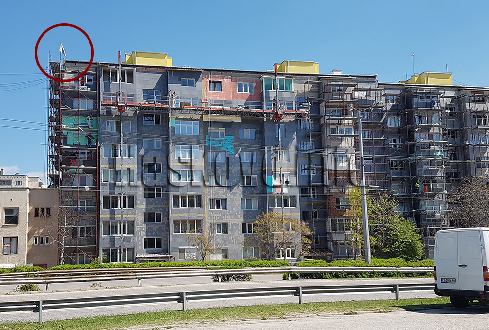 Работници издигнаха партийно знаме върху саниращ се блок в Хасково