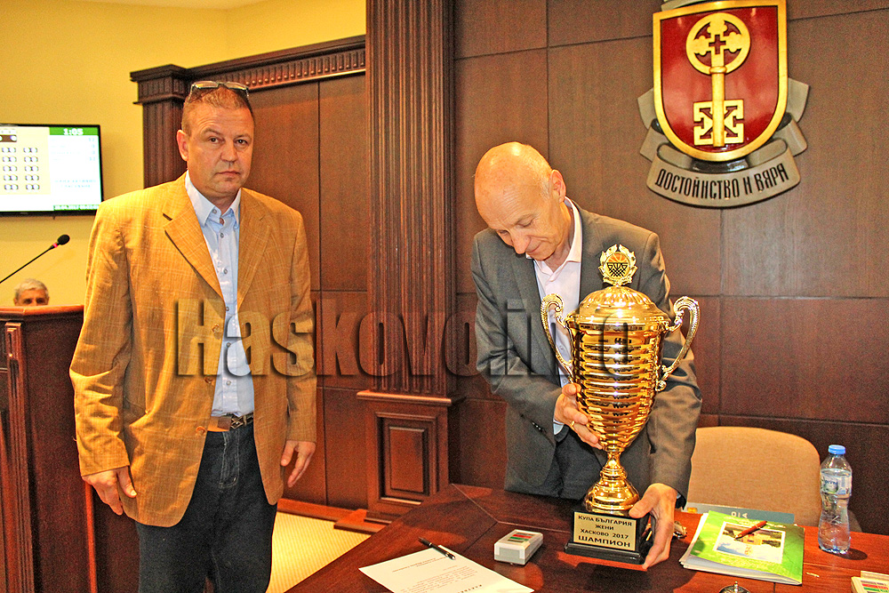 Както Haskovo.info писа, на сесията тази сутрин изпълнителният директор на „Хасково 2012“ Станислав Станков подари Купата на България на общината в лицето на кмета Добри Беливанов и поиска финансова помощ за заплати на баскетболистките.