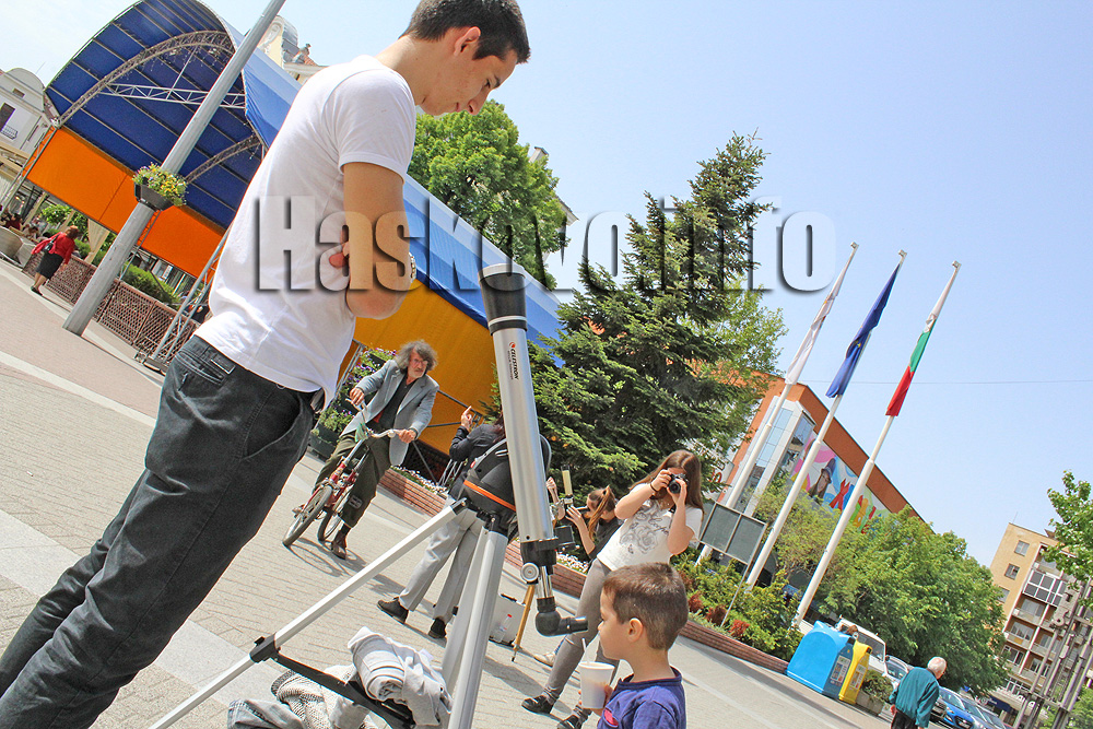 Два телескопа за наблюдение на слънцето бяха разположени по обяд на хасковския площад „Свобода“.