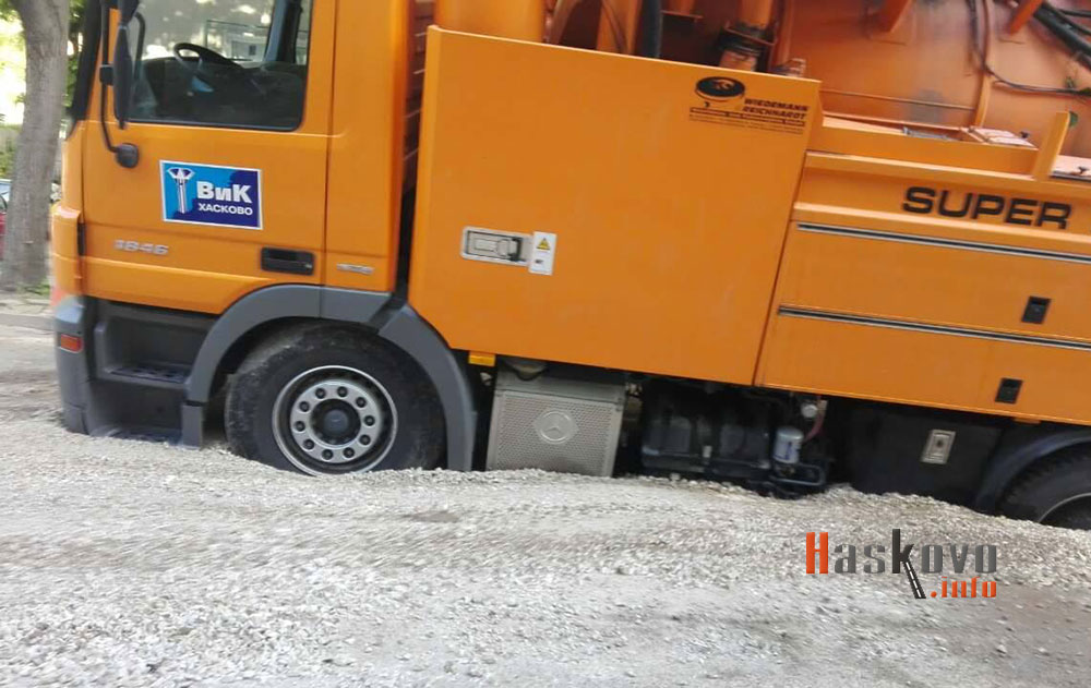 Камион на ВиК пропадна в дупка, която водното дружество е изкопало на ул. „Св. св. Кирил и Методий“ до училище „Васил Левски“, сигнализираха читатели на Haskovo.info.