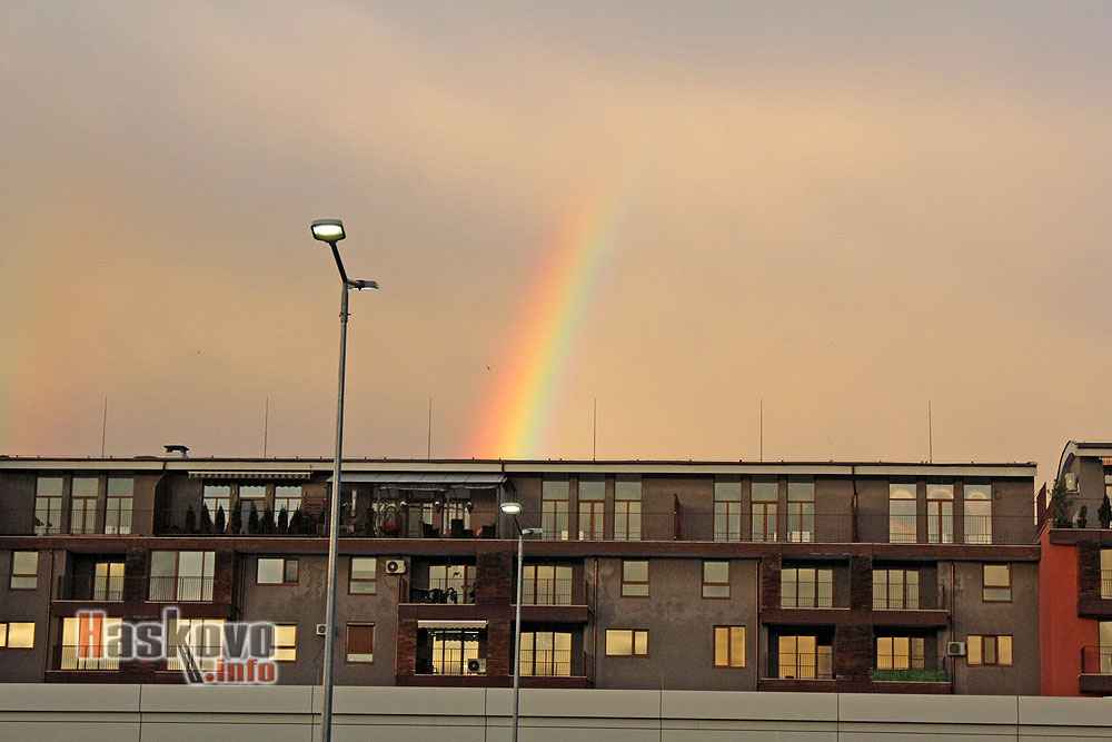 Привечер с поспирането на дъжда над Хасково се появи красива дъга.