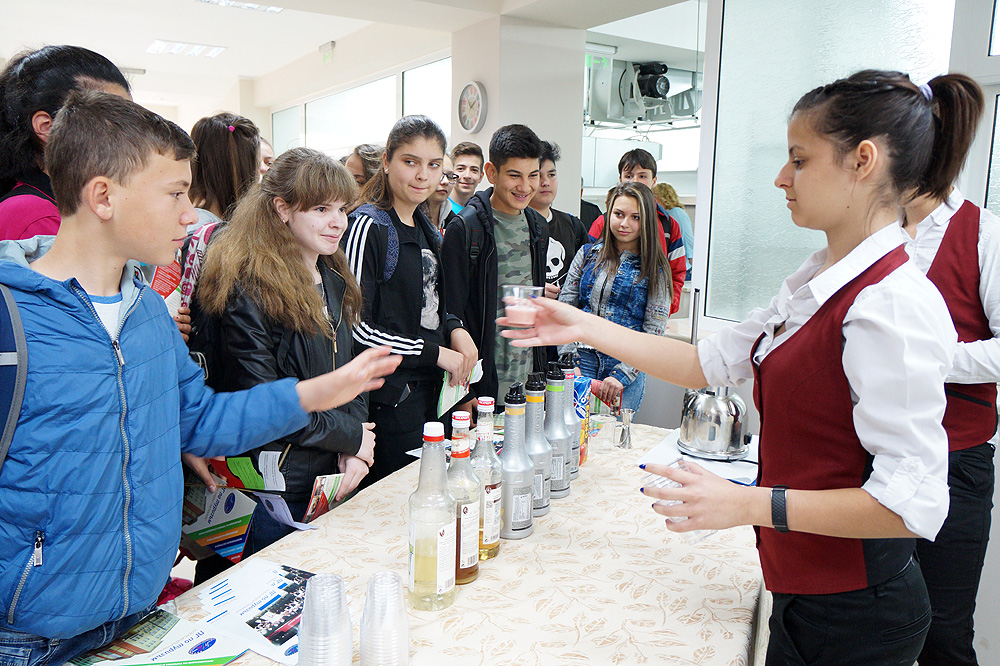 В учебния ресторант ученици демонстрираха кулинарни умения, приготвяха безалкохолни коктейли тип смути и фламбираха палачинки. Гостуващите деца имаха възможност да се включат в декориране на дребни сладки и меденки и в приготвянето на коктейлни хапки.