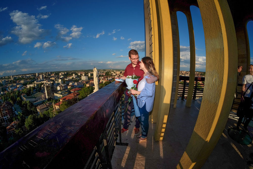 Дани бе избрал впечатляващ начин Стефи да научи за неговите сериозни намерения. Младият мъж и неговата половинка се качиха на последния етаж на камбанарията до Св. Богородица.