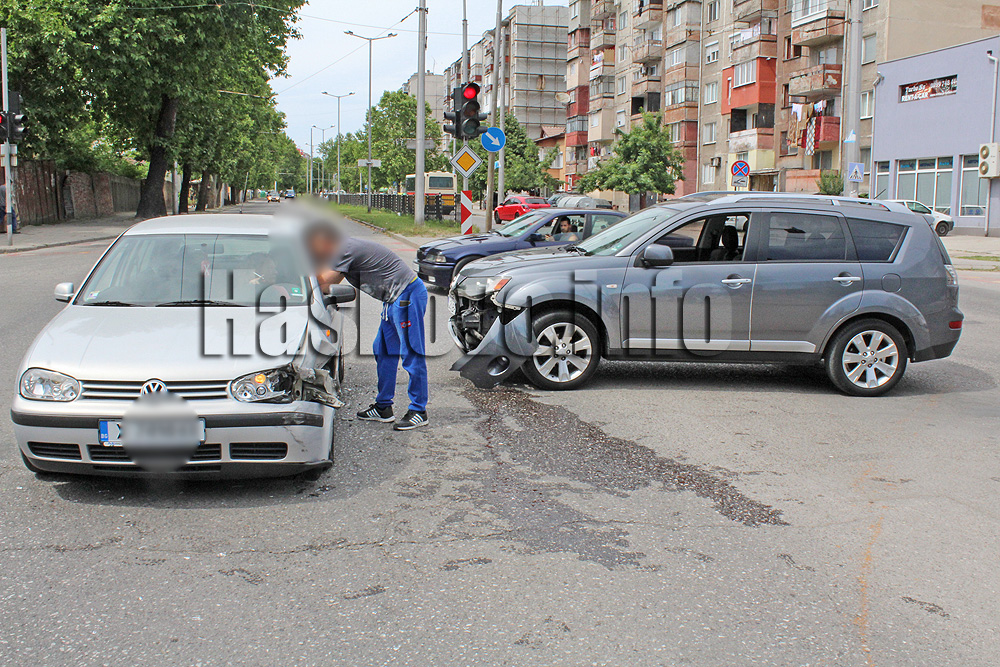 Мицубиши и Фолксваген катастрофираха в хасковското кръстовище между улица „Дунав“ и булевард „Васил Левски“.