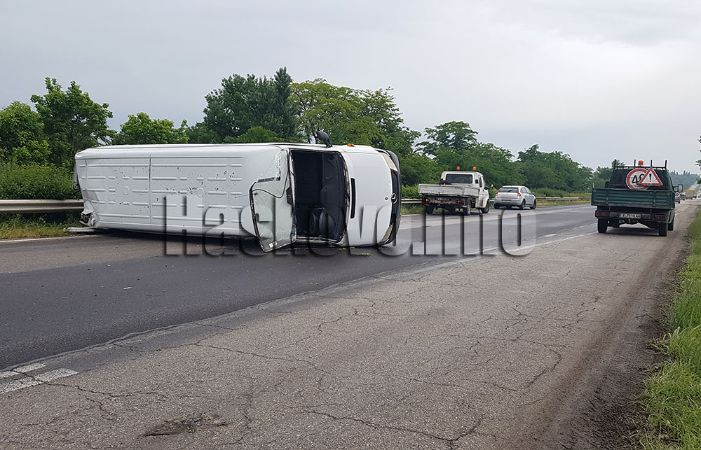 Микробус Мерцедес се преобърна на пътя между Хасково и Димитровград.