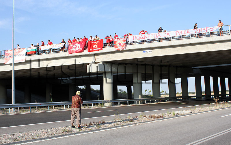 Трийсетина почитатели на „армейците“ от цялата област опънаха транспаранти на моста в подкрепа на „ЦСКА-София“ и пяха песни за любимия си клуб и неговия благодетел Гриша Ганчев.