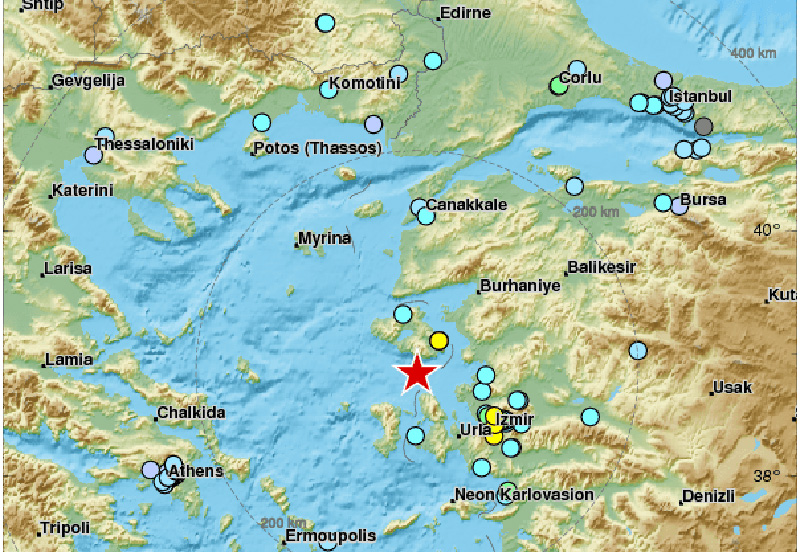 Трусът бе в 15:30 часа на 84 километра северозападно от Измир на дълбочина 80 километра, съобщават от Европейския сеизмологичен център.