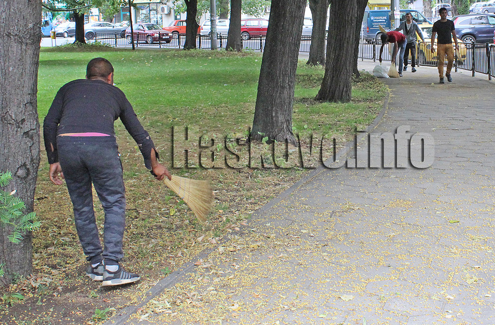 Ромска фамилия пълнеше чувалите с липа по булевард „Раковски“. По същото време групичка метеше чевръсто тротоара по бул. „България“ в района на Бизнесцентъра.