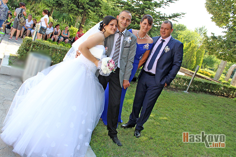 Въпреки жегата, няколко двойки младоженци се засякоха в следобедните часове на Ямача в Хасково, където е любимо място за сватбени фотографии заради монумента на Богородица и камбанарията.