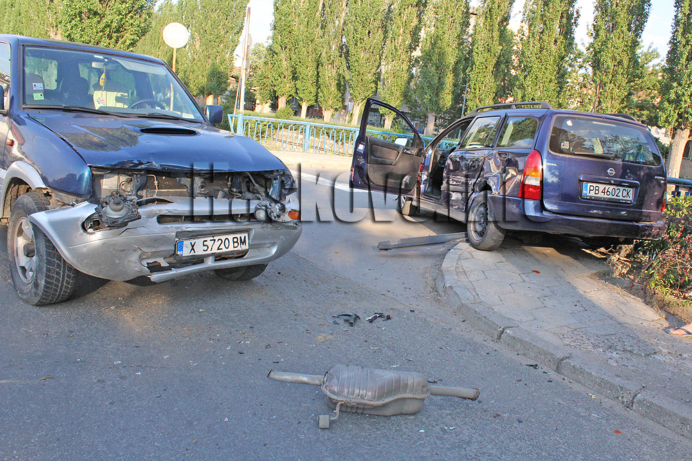 Лек автомобил „Опел“ с четирима младежи и джип „Нисан“ катастрофираха на моста до площад „Лебеда“ в Хасково.