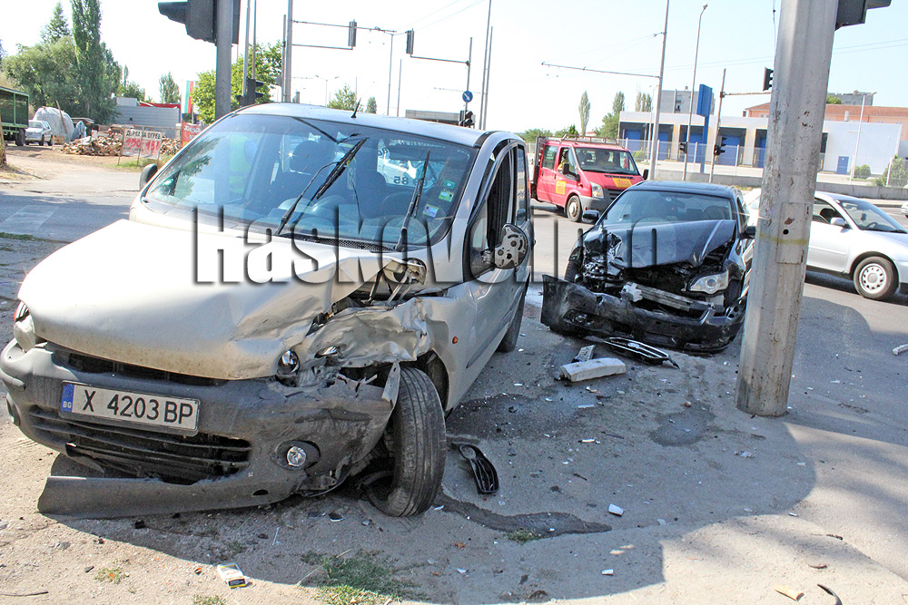 Леки автомобили „Субару“ и „Фиат“ катастрофираха в кръстовището между булевардите „Стефан Стамболов“ и „Васил Левски“ под АГО в Хасково.