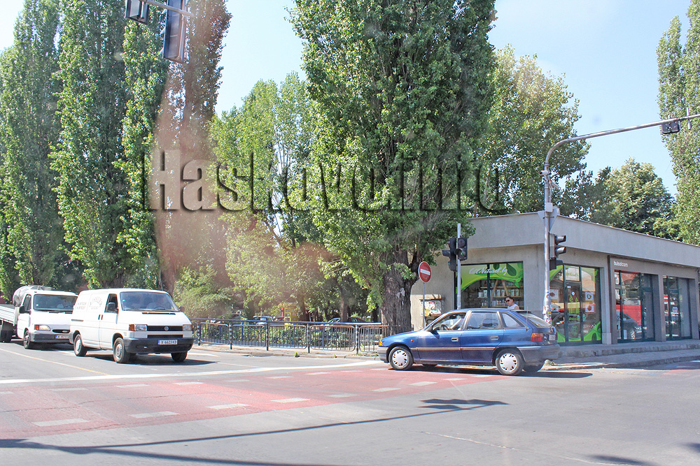 Лек автомобил „Опел“ тръгна към насрещното движение по хасковския булевард „България“ при кръстовището с булевард „Съединение“ до зеленчуковия пазар.