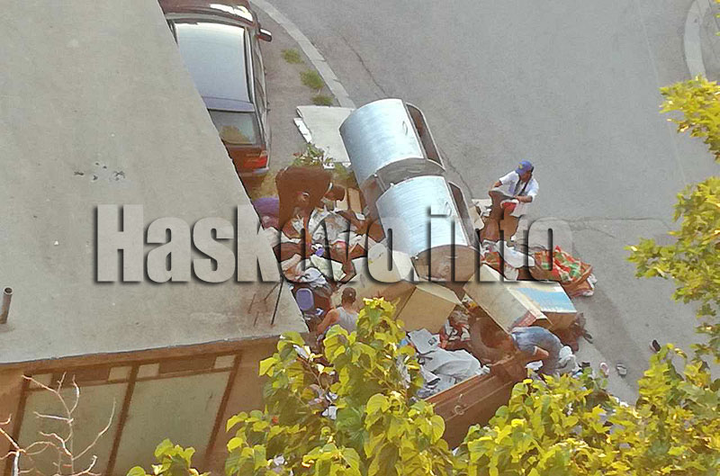 Около контейнери за смет на хасковската улица „Георги Кирков“ са натрупани всевъзможни вехтории. Хората разказаха, че около боклуците веднага са се натрупали роми, които са търсили полезни за тях неща.