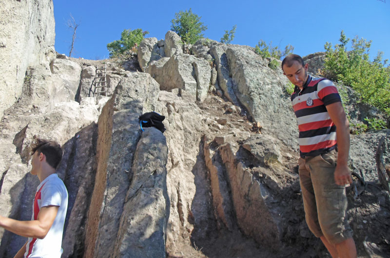 Буквално преди няколко дни успяхме да разкрием и скалния проход, който води към светилището от южната страна. Това е сечено в скалите стълбище, много наподобяващо това на Перперикон. В него по-късно е бил изграден най-вероятно един от входовете на крепостта – кула-вход, която е била на дървени греди и е доста интересна като архитектурна конструкция. И освен тези три сектора, ние вече успяхме да разкрием най-голямата шарапана в този район, която беше буквално загубена в гъстите гори, покрили хълма. Скалните ниши, които са 17 на брой са изключително атрактивни и много важни за изследването на комплекса, както и големия скален олтар, който се намира в близост до тях, допълни археологът.